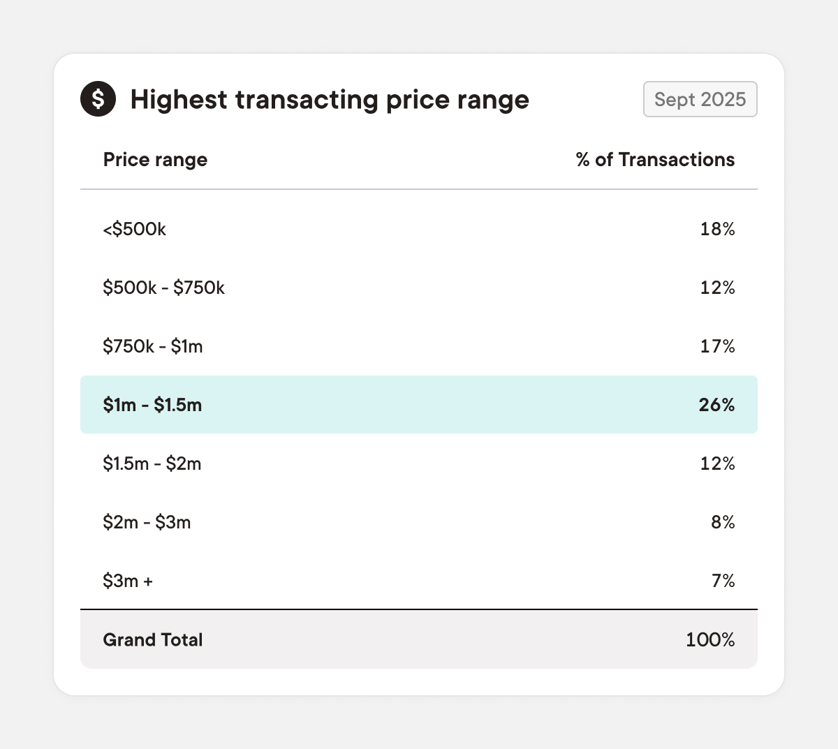 The $750k-$1m price bracket, which was the most popular in August (23%), dropped to third place at 17% last month.