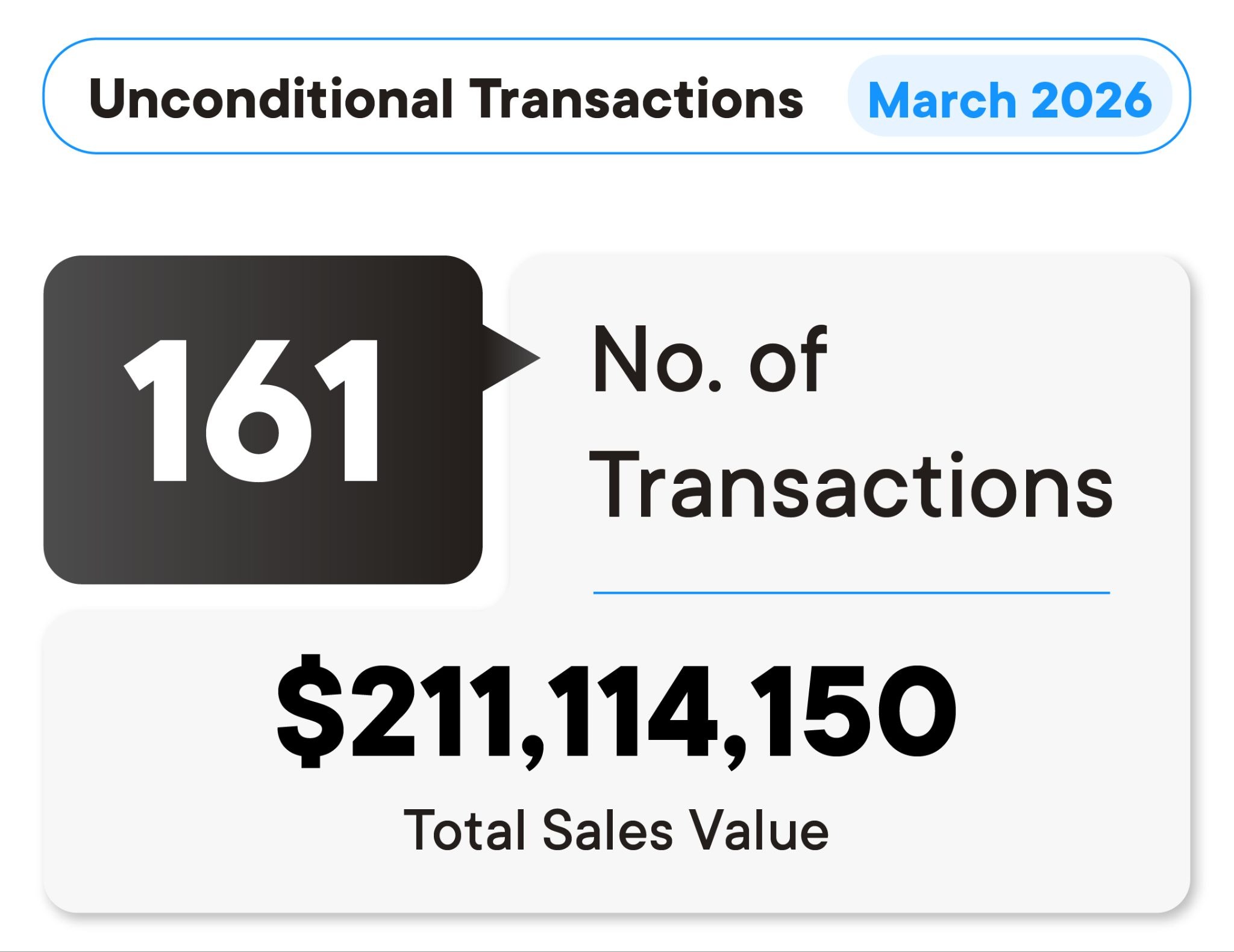 Our Development ID marketplace connects developers with 7,800+ agents, and has recorded a total of $211,114,150 in total unconditional sales for March, underpinned by 161 transactions, signalling continued resilience across the off-the-plan market.
