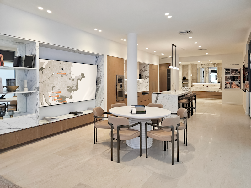 A highlight of the display is Showcase’s interactive animated map, enabling buyers to explore Mosman’s local amenities, essential services, transportation, and lifestyle attractions with ease. This digital experience helps the Ray White Projects sales team convey HavenLuxe’s vision and surrounding community with clarity and impact.